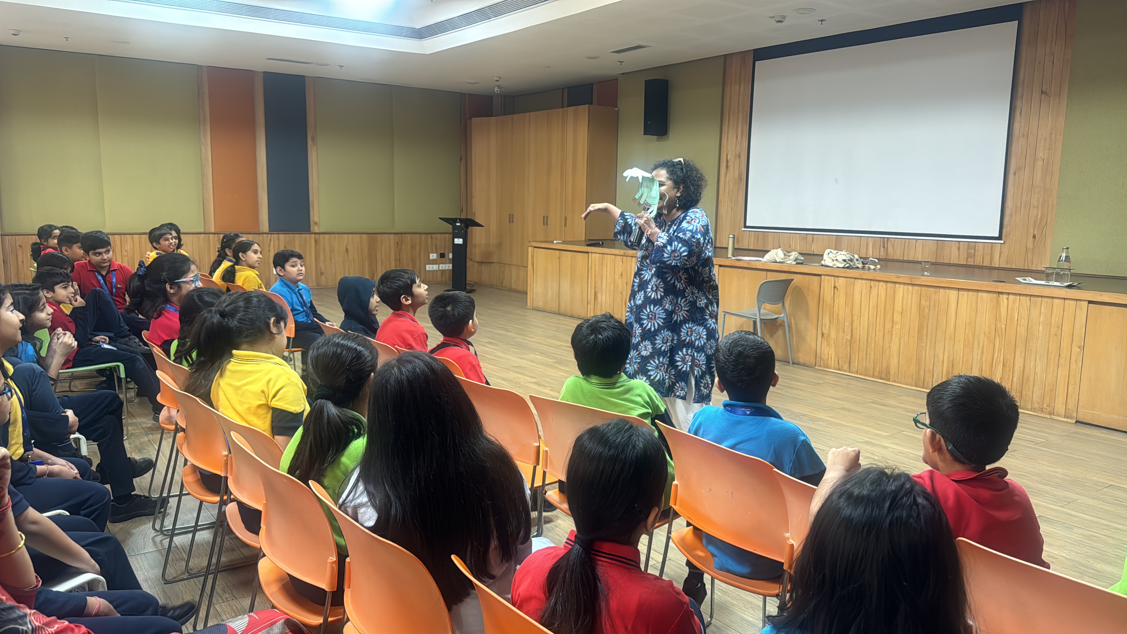 The Shiv Nadar School, Gurgaon, was delighted to host an inspiring storytelling session for all Grade 4 students on Monday, October 13th, 2025, presented by the talented Ms Sonia Duggal.