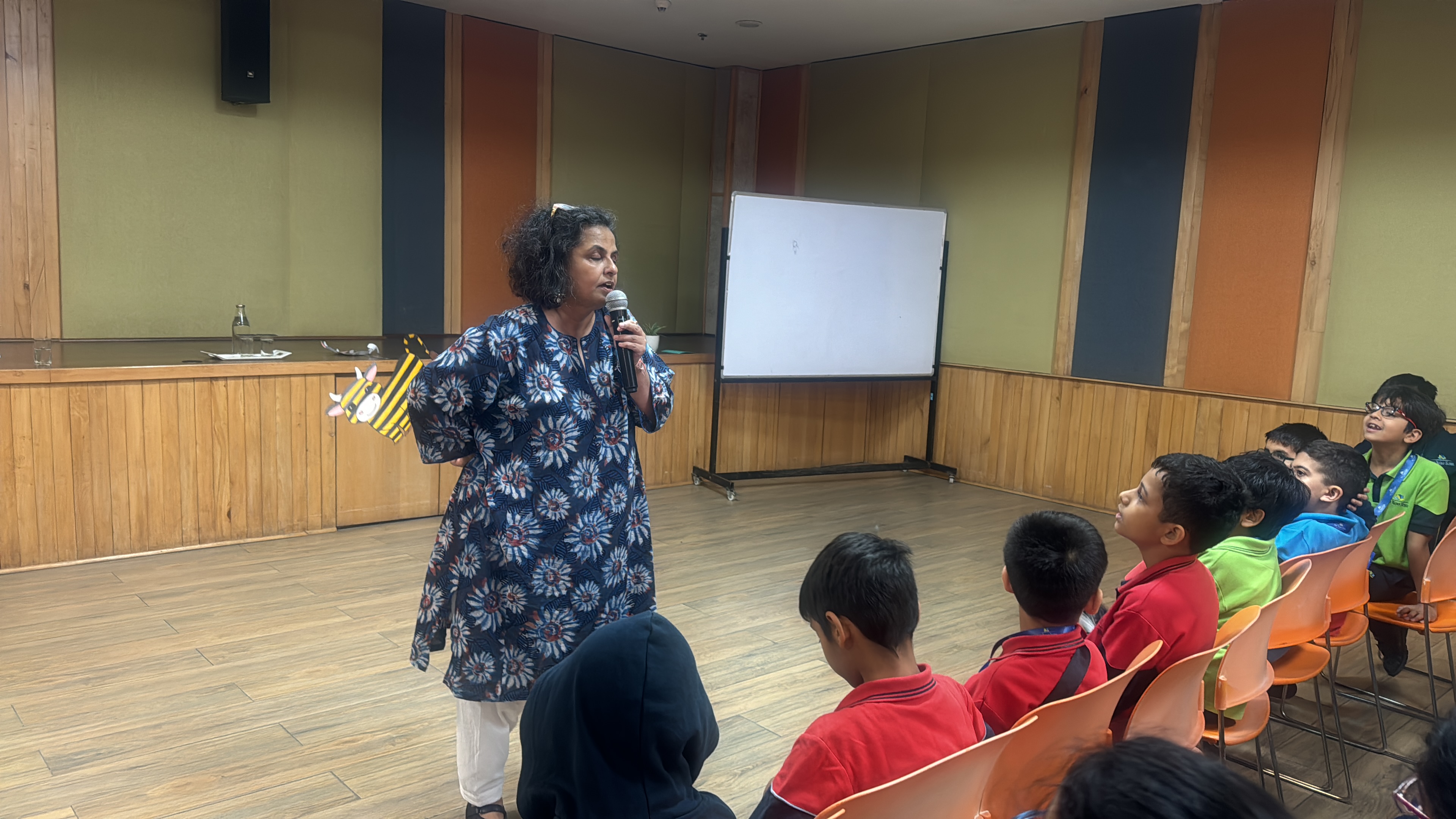 Ms Duggal skillfully wove together captivating narratives in both Hindi and English, concluding her engaging presentation with a melodic song. The session was marked by remarkable student engagement and active participation. Ms Duggal's dynamic approach, incorporating diverse pedagogical techniques such as imaginative paper cutouts, collaborative student and teacher interactions, thought-provoking Q&A segments, clever riddles, and expressive vocal delivery, ensured a vibrant and highly interactive learning environment.
