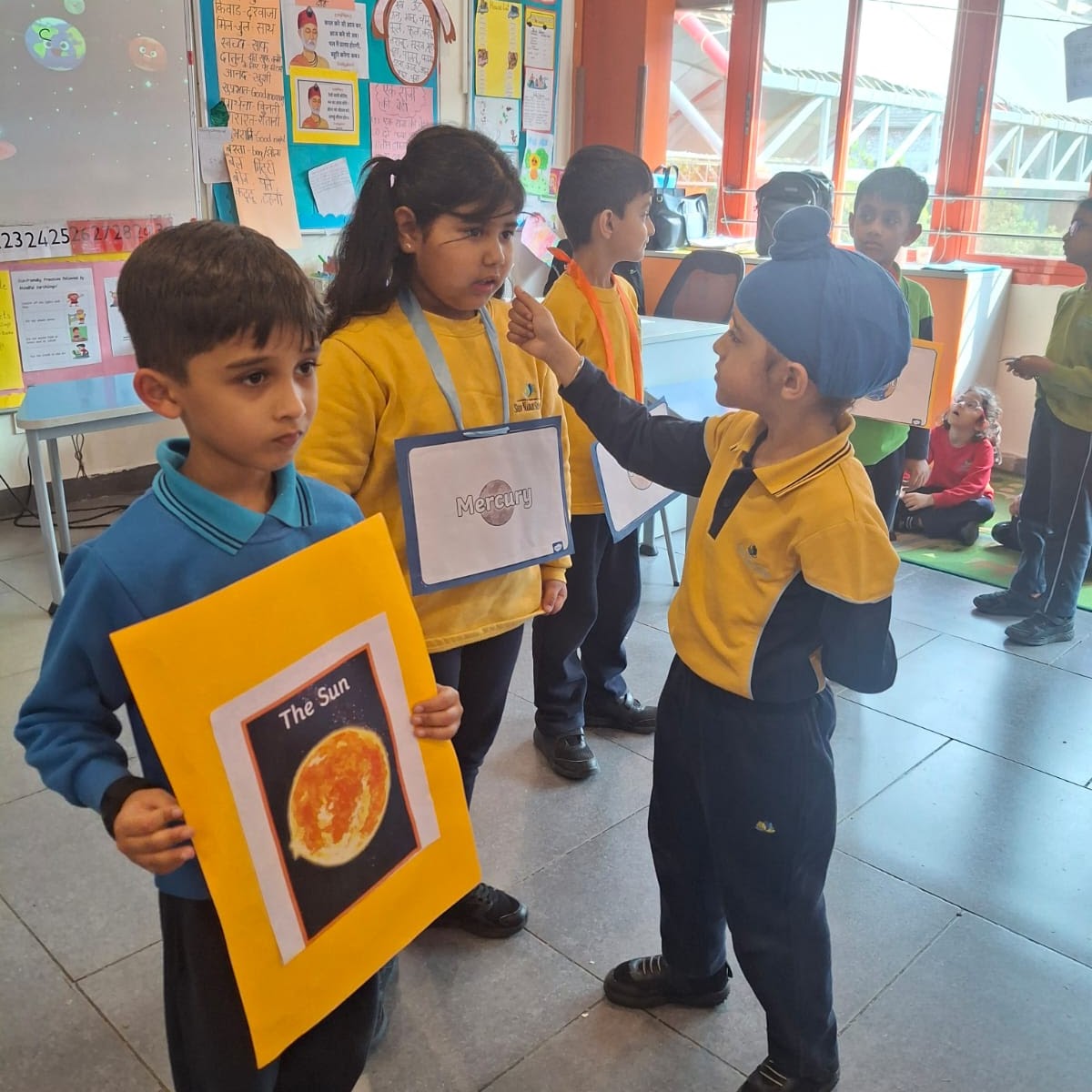 On the final day, the classroom transformed into a vibrant model of the solar system. Each learner selected a planet, stood in the correct orbit around the Sun, shared key facts, and revolved to music—bringing the concept of planetary motion to life in an experiential and memorable way.