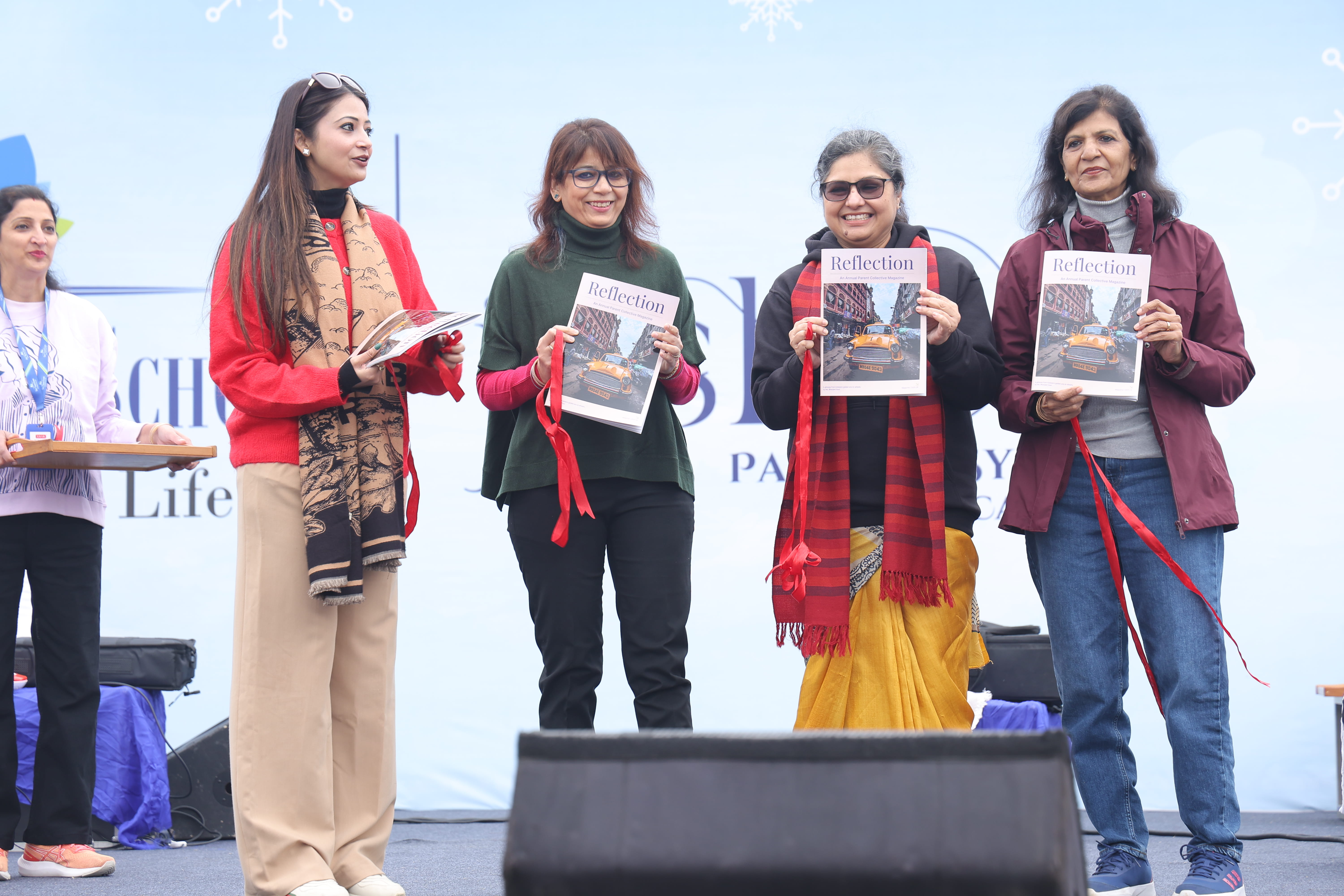 The Theatre Collective presented “PTM – A Battlefield”, an original and relatable performance that brought humour and insight to familiar parent–school moments. The Music Collective showcased an ensemble built through months of shared practice, reflecting joy, confidence, and collaboration. The Creative Collective hosted a Gallery Walk featuring parent artwork that expressed personal stories, experimentation, and the comfort of creating together. The Readers’ Collective curated a welcoming Book Exchange, inviting families to browse, exchange, and pass forward the joy of reading. The afternoon also marked the launch of Parents’ Trident – Reflection, Volume 10, capturing voices and reflections from across the parent community.