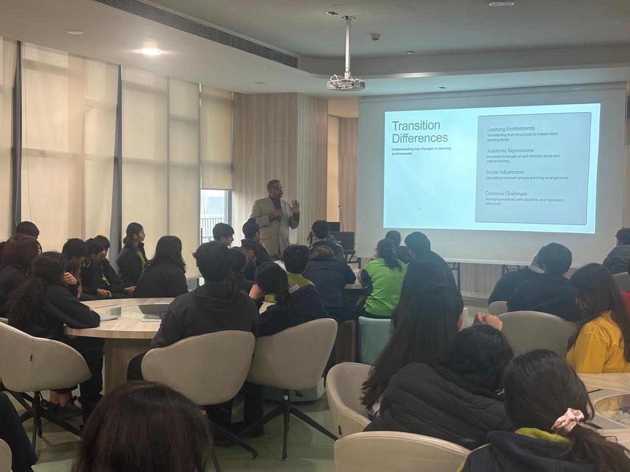 As part of the Parent Partnership Series initiative led by the PPO, a session on the “Transition from school education to higher education” was conducted for Grade 11 students by our parent Mr. Senthil Kumar, Chief Operating Officer, Bennett University. The session offered valuable insights into the diverse possibilities and opportunities available to students as they plan their academic journeys beyond school. Through an engaging and interactive format, Mr. Kumar guided students in understanding the evolving landscape of higher education,