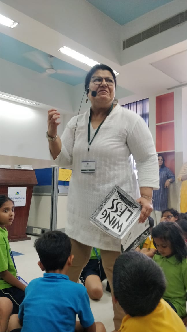 During this interaction she conducted an animated story telling session from her acclaimed book ‘Wingless’, which has been performed nationally and internationally. While she read excerpts from this book, students were mesmerized with her narration style, yearning to hear to the whole story!