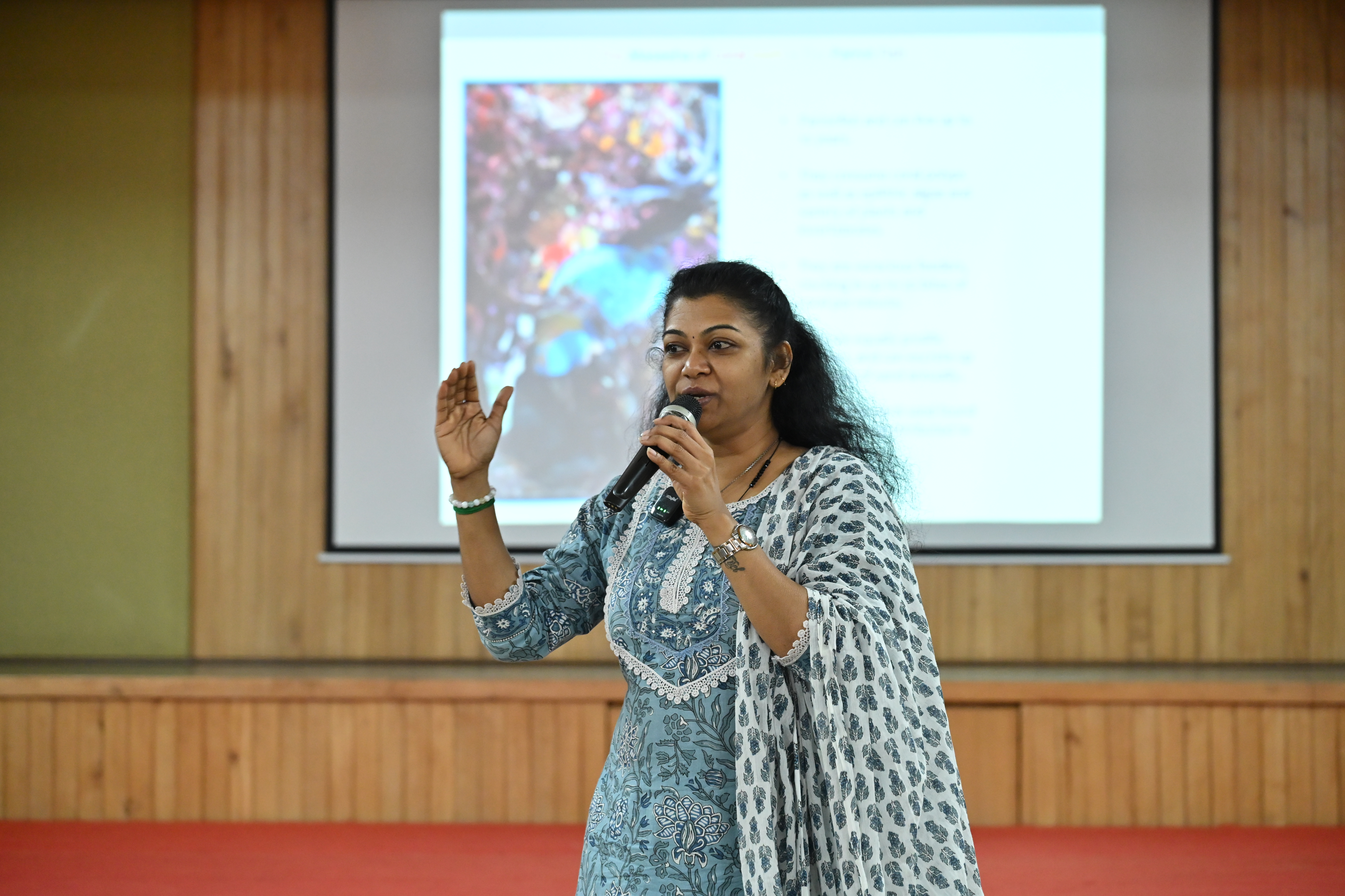 Through engaging examples and visuals, students were introduced to different types of coral reefs such as fringing reefs, barrier reefs, and atolls. She also spoke about marine organisms like parrotfish and starfish, explaining their role in maintaining the balance of the ecosystem. Students found these examples especially interesting as they could see how closely connected marine life is.