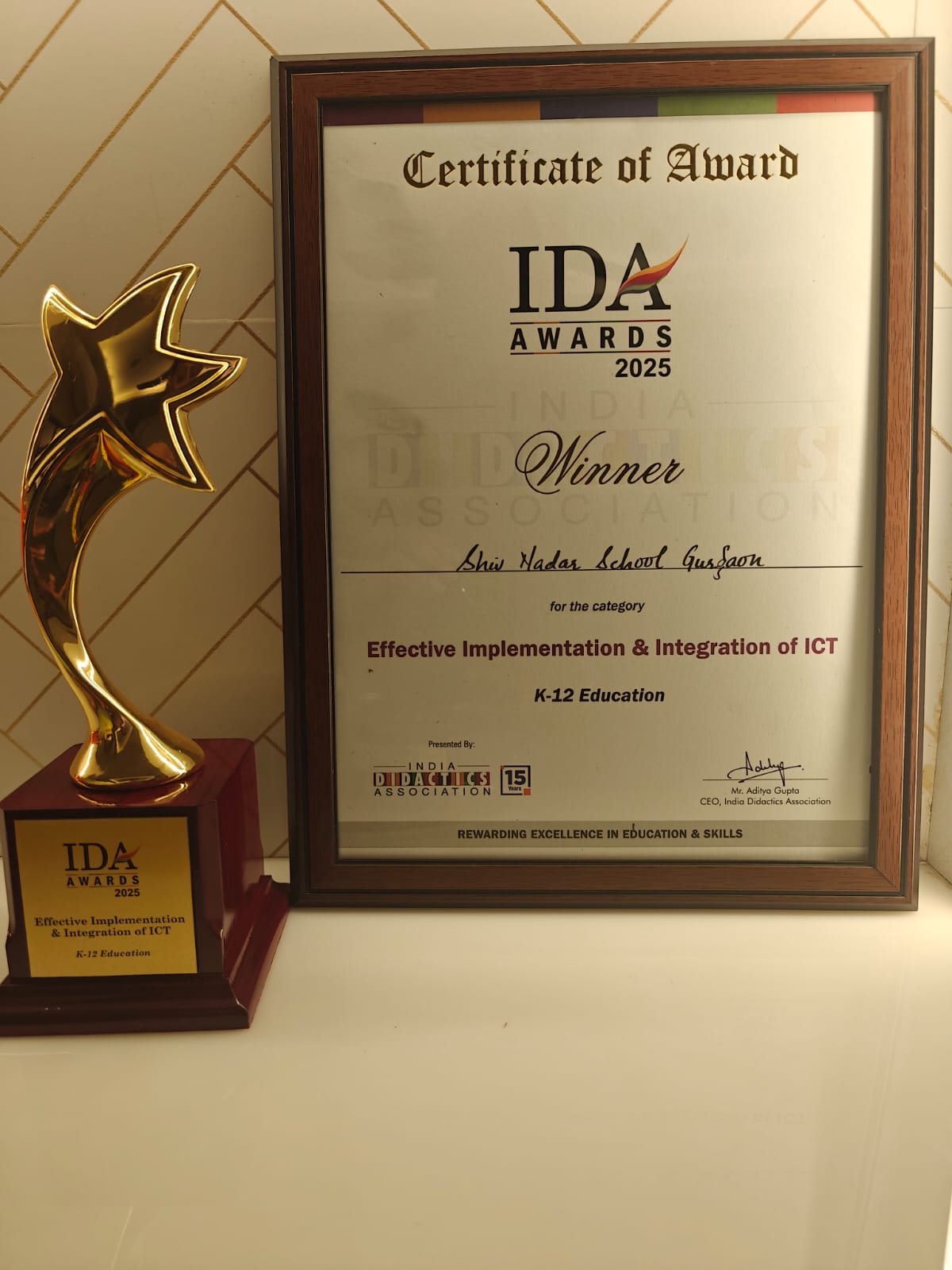 On behalf of our Chairman, CEO, staff, students and parent community, our Principal, Mr Sameer Arora and the Parent Partnership Manager, Ms Pallavi Mahanta had the opportunity to collect the IDA Awards for Effective Implementation and Integration of ICT in K to 12 Education at the function held on 18th Nov. 2025.