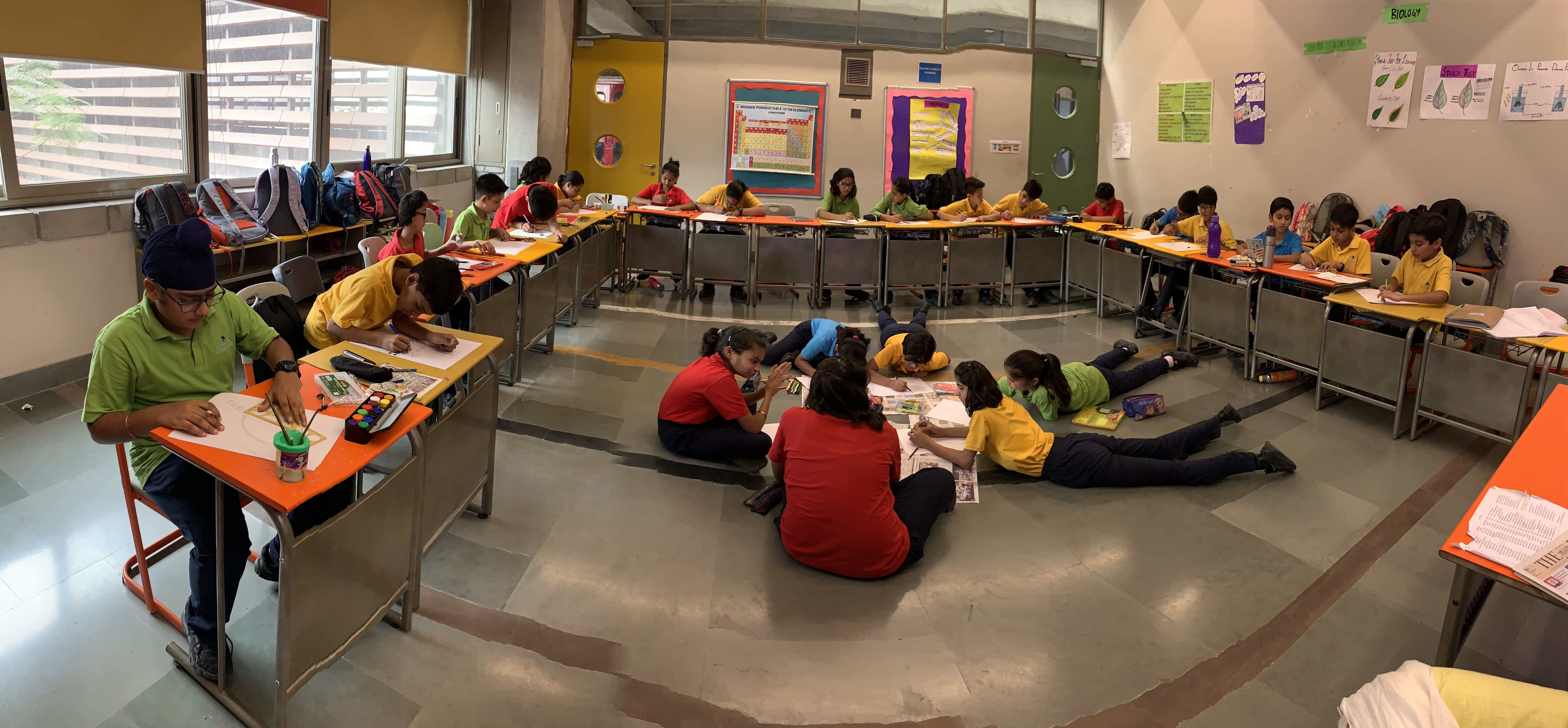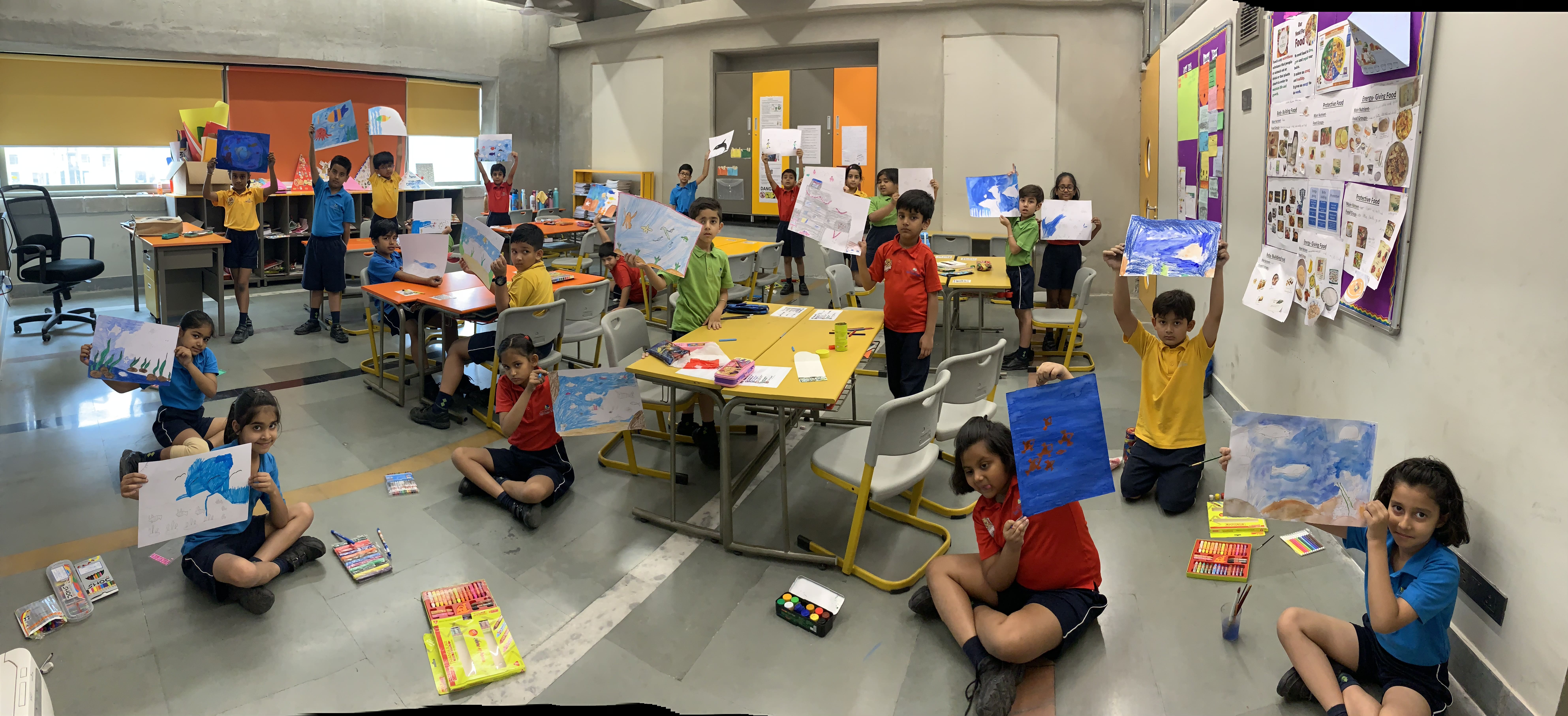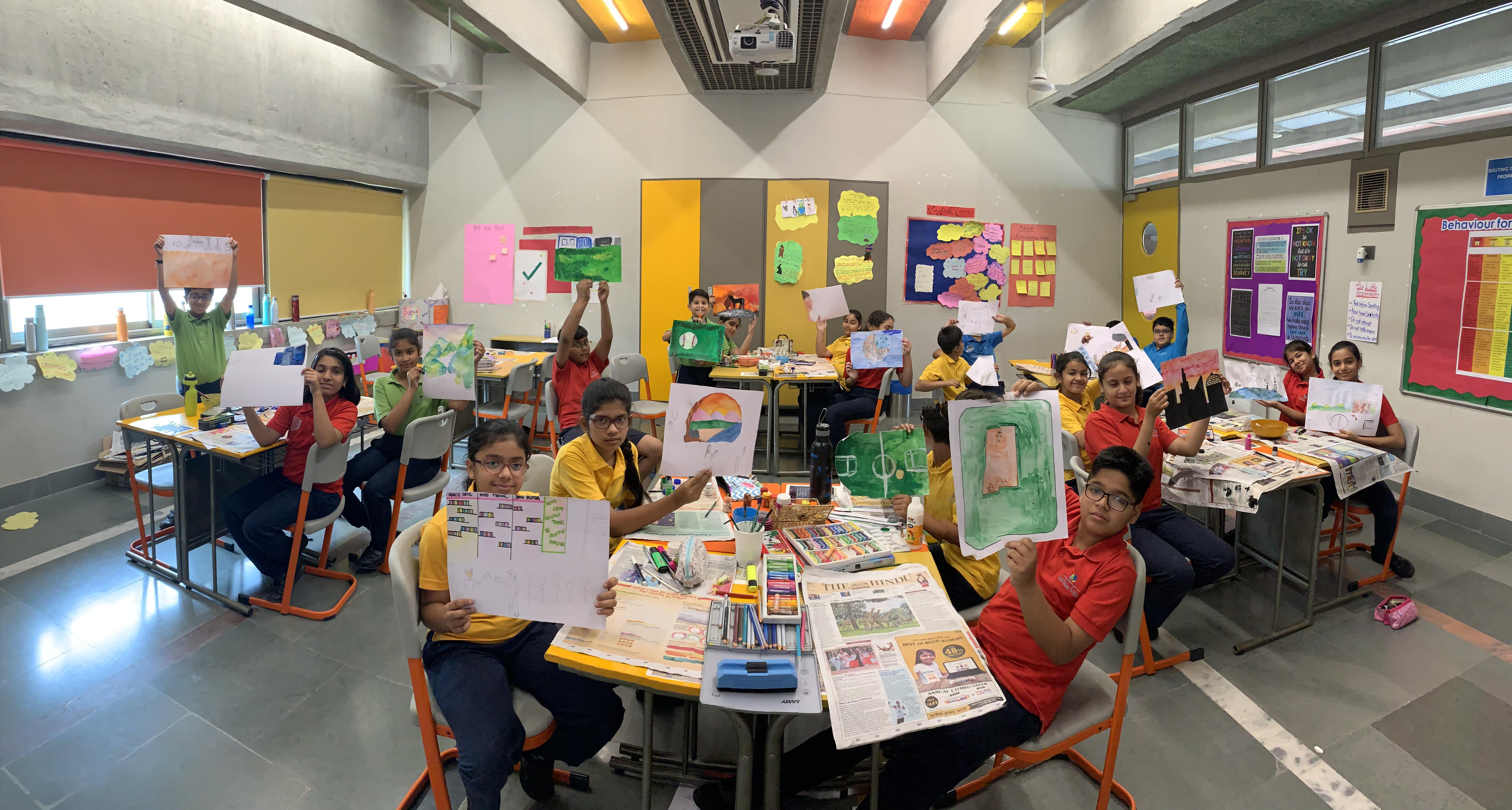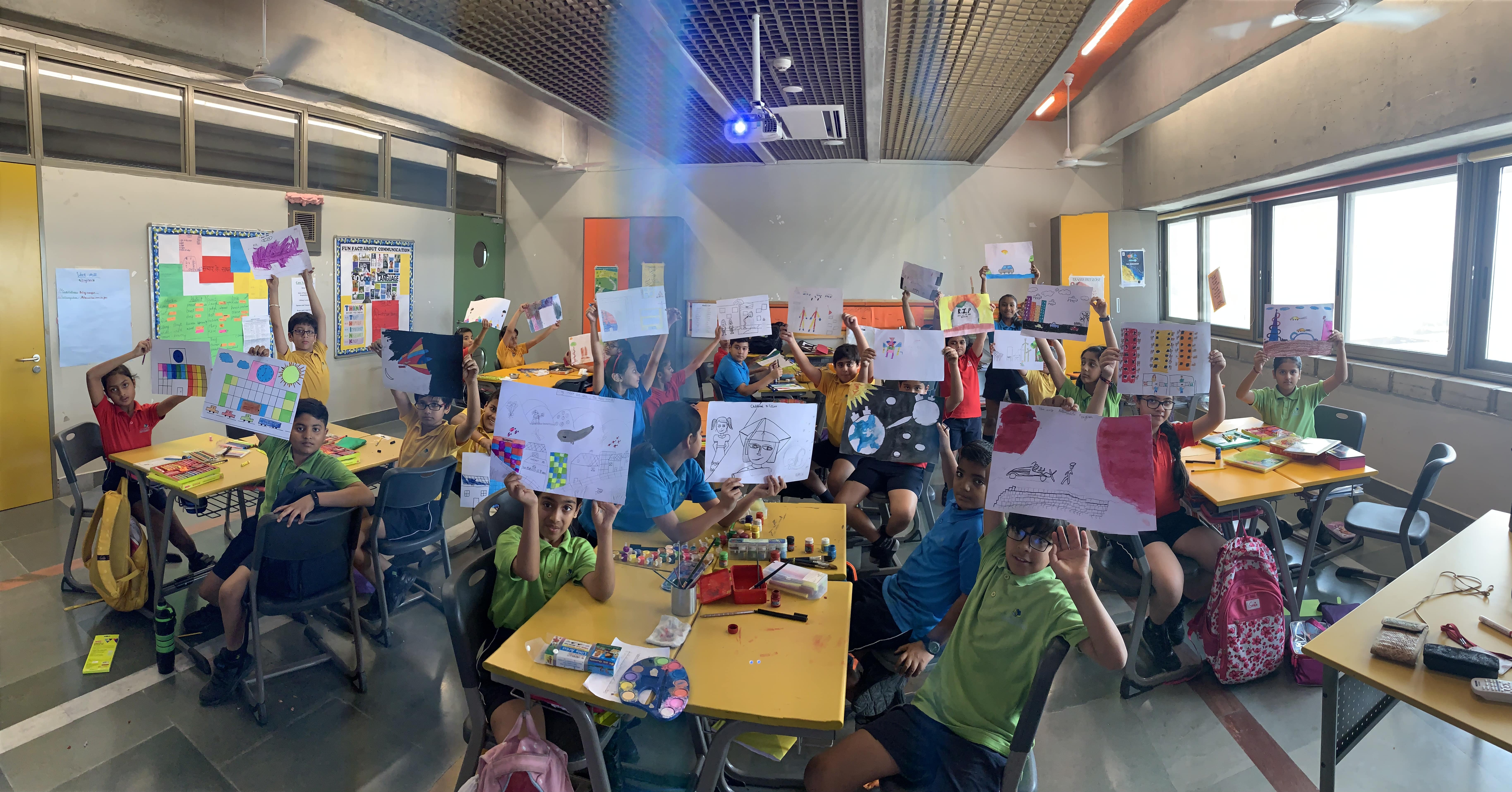 On 14th May, 2019, an Inter House Painting Competition was organized at Shiv Nadar School, Faridabad. The students of grade 3 to 9 participated, started at 9:10 am post breakfast and worked till 10:30 am. Homerooms of Grades 3 to 9 were lively with creativity and artistic expression with the help and supervision of subject teachers and homeroom incharges.