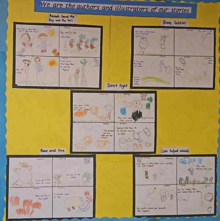 Kindergarten learners listened to the heartwarming tale Bear Snores On and explored its story structure. They then became young authors and illustrators, crafting their own storybooks with colourful drawings and original storylines.