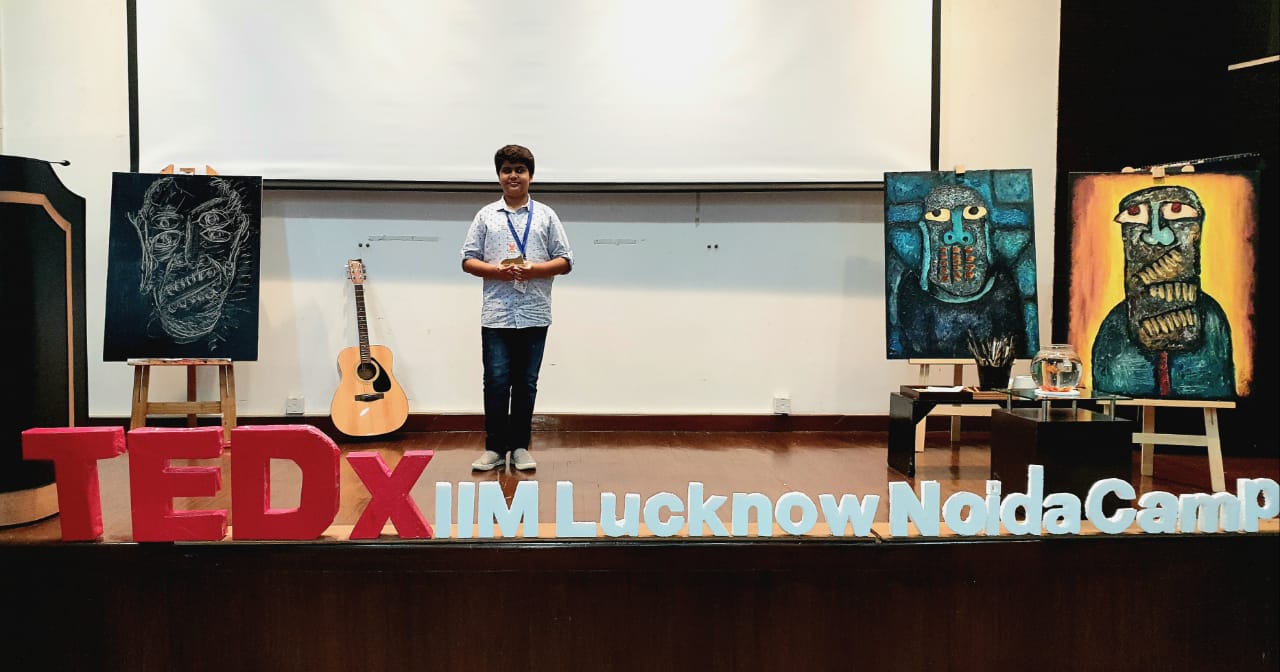 Artist is born not made, nothing can be more apt to explain the artistic talent of Aarav Verma Grade VIII student. A child prodigy born 12 years ago was the youngest speaker at a platform that needs no introduction to TedX at the IIM Lucknow Noida Campus. He shared the artistic journey and its challenges.