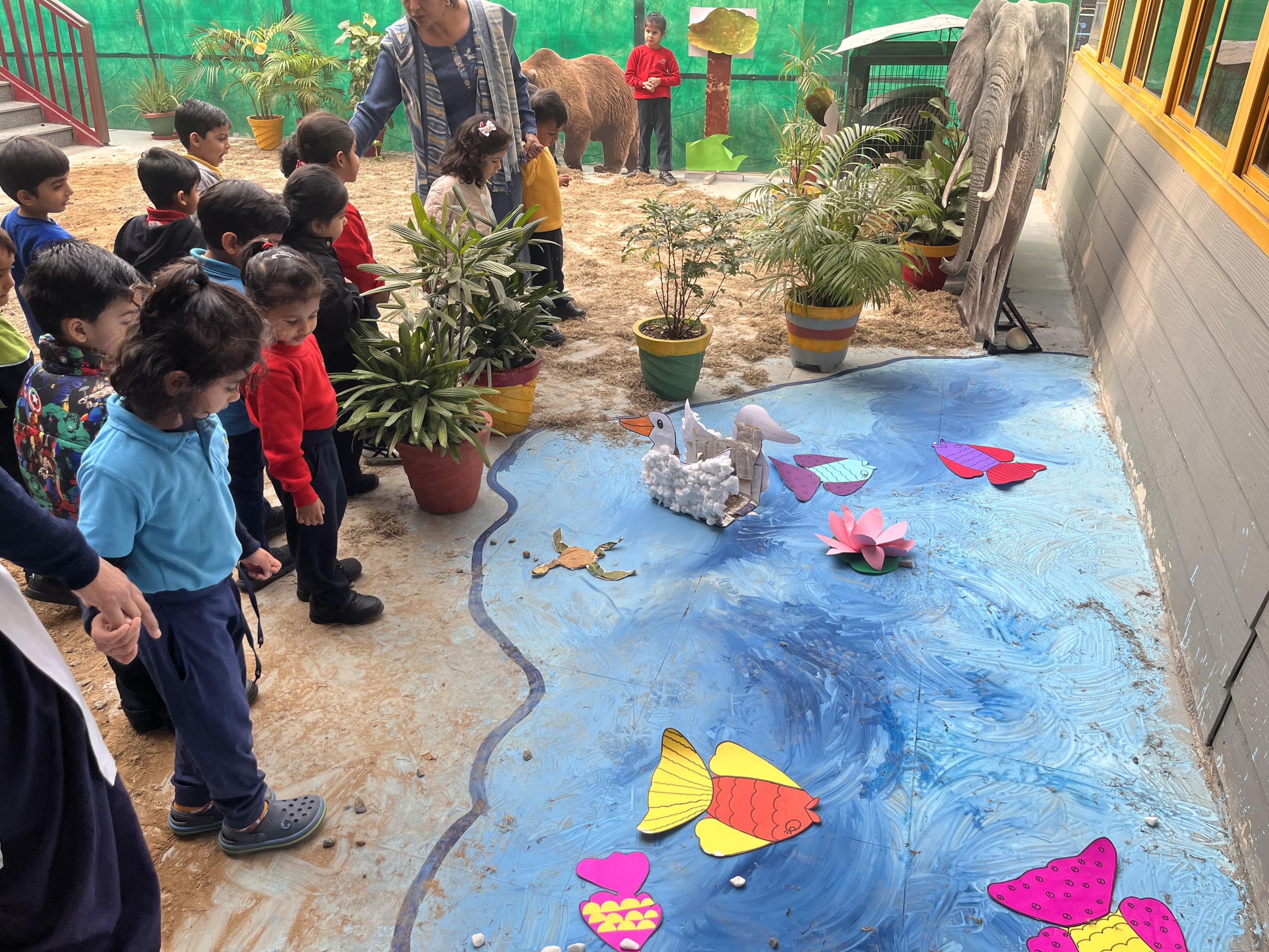 The young minds of Shiv Nadar School collaborated brilliantly in crafting the ‘Shiv Nadar National Park’, showcasing their creativity and teamwork. They exchanged ideas with their peers and presented their research on the ‘endangered animals’ and why they are kept in the national parks through this activity. Enthusiastically sharing their newfound knowledge with Nursery and Foundation friends, these kindergartners exuded joy and excitement, welcoming visitors with pride. From purchasing a ticket to enter the National Park to knowing interesting facts about it, the day was filled with zeal and excitement.