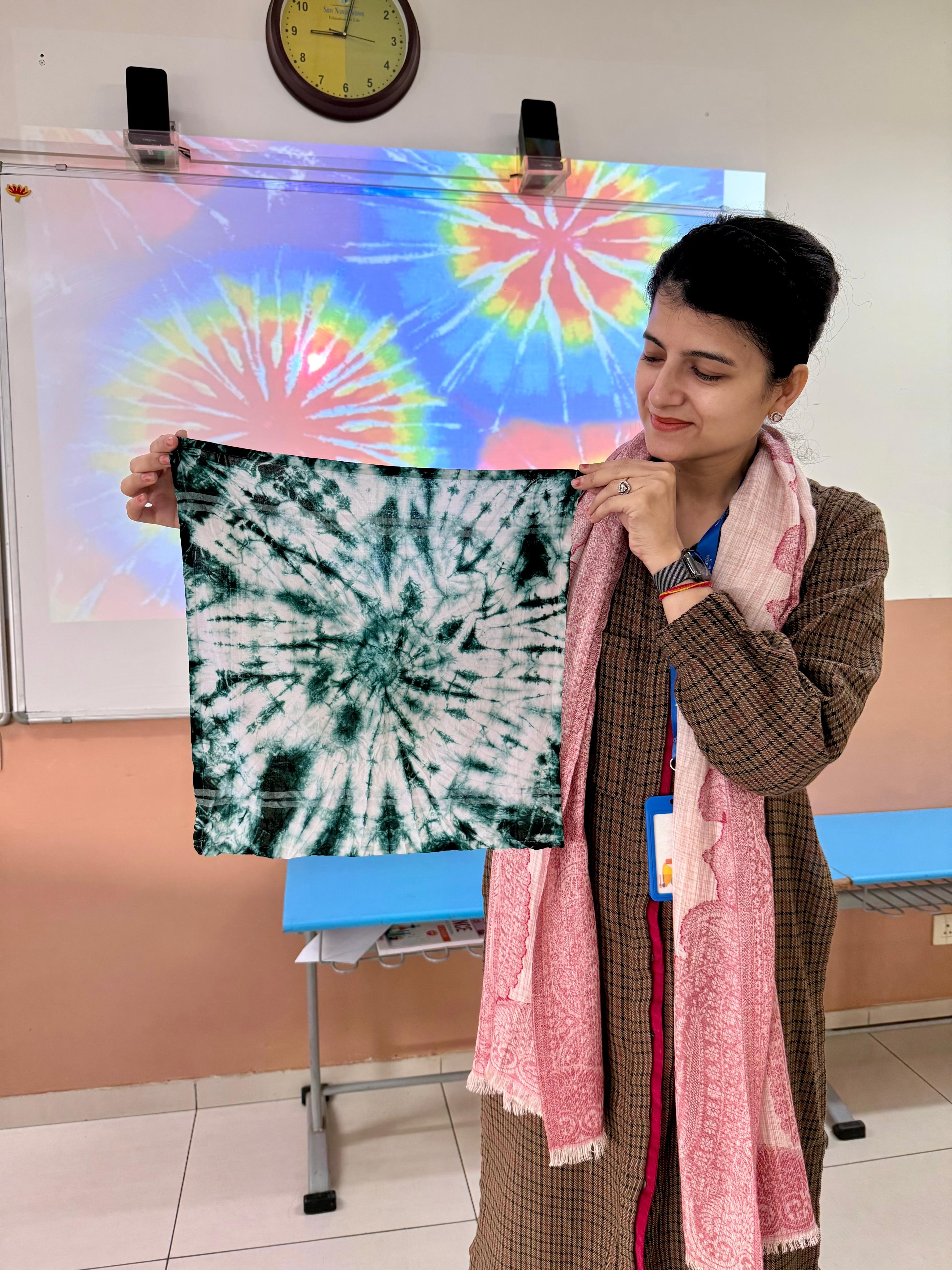 Celebrating the colours was a workshop held as part of the Parents' Collective engagements for the month, led by our educator Ms Rampriya. The participants experimented with simple dyeing techniques through various twists and turns, folds, beads and seeds tied in, they created wearable art pieces - stoles and handkerchiefs.