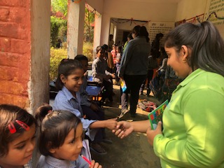 On 25th October’2019, the students of the Service Learning Club went to the government school in Bhatola. The aim for our visit was to donate the books we had collected. We also interacted with the students there and told them stories from those books itself to develop their interest in reading. Since Diwali was around the corner, they all had decorated their classes and had made beautiful rangolis. We were really amazed after seeing the way they had decorated their corridors and their classes. They were really excited and happy to see us and even more curious to read the books we had got for them. They listened to us very carefully while we told them stories. The students there were confident and also very interactive. They were also very fluent and well spoken. We were overwhelmed by receiving the love and affection that we did on our first visit. We realised that we were very privileged to get so many facilities and opportunities in our school and we are thankful for them.